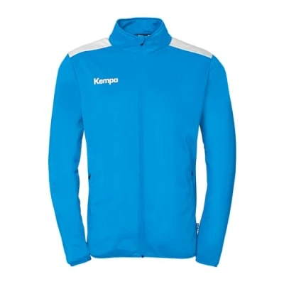 Kempa training jacket, sports jacket, sweat jacket without hood. Available in sizes for children and adults, men and boys. Hem binding on sleeves and hem. Side zip pockets. Handball jacket, night out jacket and training jacket without hood - with side zip pockets. For the planet: the jacket is made from 60% recycled polyester.