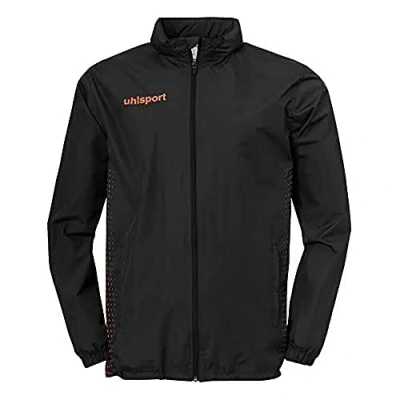 Our new score rain Jacket is perfectly usable during every season of the year. No matter if you want to wear it For outdoor activities like football training, Running or for leisure reasons, just take your slicker and you're good to go The jacket is strongly water repellent what will make you stay dry from the inside for a very long time. The fabric consists of 100% polyester and the coat has a t-mesh lining which results in a more comfortable and extra protective feeling The score collection is high-fashion as it was made of colours that are good to combine with your favorite it-piece. The stand up collar protects your throat to prevent you from the cold and rain. The breathable and light fabric guarantees a high wearing comfort The eye catcher not only is the contrast coloured uhlsport imprint on the chest but also the coloured score design at the side of your waist. The front zip allows you to regulate coverage and protection to your own preference The welded seams stand for better water absorption and protection and the pockets will make your hands Stay dry wand warm. Trust in our know-how and the high- quality standards of uhlsport!