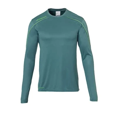 The new long sleeve shirt is an absolute all-rounder. It doesn't only look high-quality and super sporty but also ensures you to feel dressed and comfortable in order to make you stay concentrated and Ready for action The top has a crew neck which results in higher coverage and better protection. It consists of 100% polyester fabrics that's why the jersey absorbs sweat and makes you keep a dry feeling. Give it a try and raise your skills to a new level! The jersey has a contrast Piping design which adds the missing piece of style and is a real eye catcher. The brand name uhlsport is printed on the right top of the jersey. Go get the matching Shorts and call it a look The material has a smooth grip which ensures an ultimate Wearing Comfort. Due to the lightweight fabrics The shirt attach to your body but doesn't restirct you in your movements as this could have negative impact on your performance We are in direct contact with professional athletes and we value customer's feedback. Due to that we can optimize our products fast and ensure perfect quality standards. Believe in uhlsport know-how, you won't regret it!