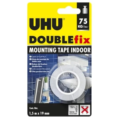 dimensions: 1.5 metres x 19 mm Double-sided mounting tape with durable high strength, up to 75 kg great for assembly and mounting of various materials Can also be used for final assembly. Simple alternative to screws and nails, Weight: 0.0440924524 Pounds, Manufacturer: UHU