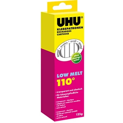 Transparent and elastic, , also suitable for heat-sensitive materials, such as polystyrene and soft PVC, , also suitable for heat-sensitive materials, RPA2023, oval shape (especially for UHU Creative Low Melt 110 C glue guns), International products have separate terms, are sold from abroad and may differ from local products, including fit, age ratings, and language of product, labeling or instructions., Manufacturer: UHU