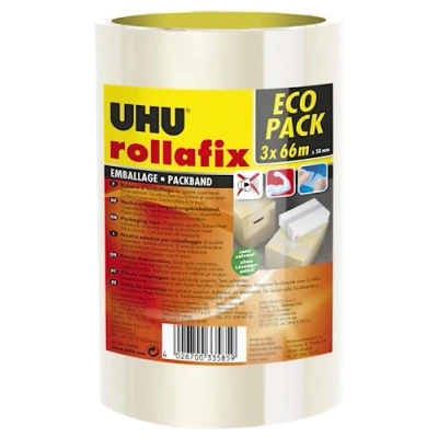 UHU Rollafix Packing Tape Clear Pack of 3 66m x 50mm