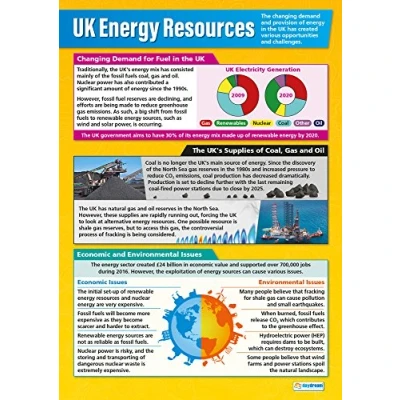 UK Energy Resources Geography Posters Gloss Paper measuring 850mm x 594mm (A1) Classroom Education Charts by Daydream