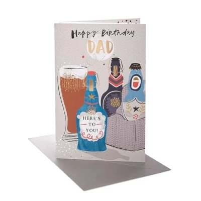 BIRTHDAY CARD - Make any birthday extra special with a thoughtful unique birthday card. A simple yet meaningful way to spread joy and celebration, whatever the age or occasion! DESIGN - Raise a glass to Dad on his birthday with this cool beer bottles card. Featuring neon accents, it’s finished with gold foil and iridescent detailing. GIFTS FOR MEN - Make his day with a thoughtful card. From birthday cards to thank you cards, our collection offers the perfect words to show him how much he’s appreciated. SIZE - This card measures 155 x 235 mm, ample space for a personal message, and a perfect size for displaying as a keepsake in your home. HIGH QUALITY & SUSTAINABLE - Our products are crafted from high-quality material, ensuring durability and a premium feel. We use materials from responsibly managed forests and controlled sources, certified by the Forest Stewardship Council (FSC). UK GREETINGS - For more than 100 years we've been proud to create products that help people connect. As part of the American Greetings family, we've grown as a greeting card supplier to become a market leading, direct-to-retail greeting card supplier in the UK.