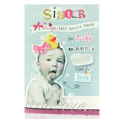 UK Greetings Birthday Card for Sister Funny Design, greenblackbeigebrowngrey, 149mm x 229mm