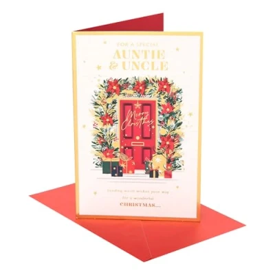 UK Greetings Christmas Card for Auntie & Uncle Xmas presents Her/Him doorway With Envelope 21 x 13.7 cm