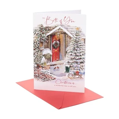 UK Greetings Christmas Card for Both of You Xmas Presents Her/Him snow front door With Envelope 22.9 x 14.9 cm