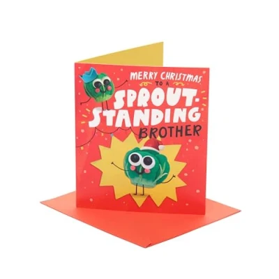 UK Greetings Christmas Card for Brother Xmas Presents Him, Boys, Men Sprout standing Models With Envelope 18.4 x 15.9 cm