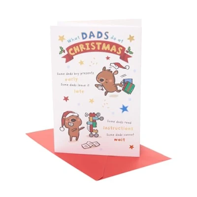 UK Greetings Christmas Card for Dad Xmas Presents Him, Boys, Men Bear doing Activities With Envelope 22.9 x 14.9 cm