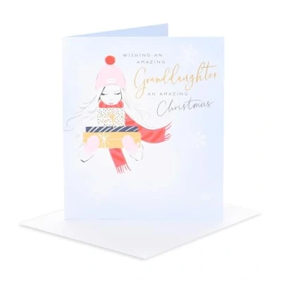 UK Greetings Christmas Card for Granddaughter Xmas Presents Her, Girls, Women Girl in Hat & Scarf With Envelope 18.4 x 15.9 cm