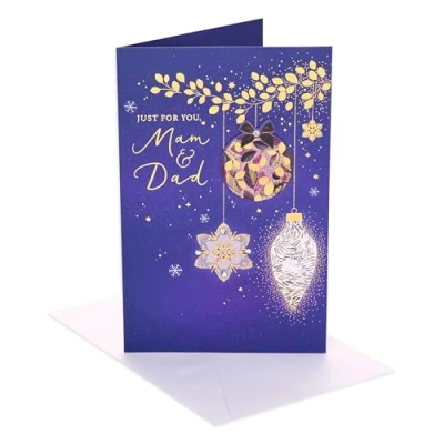 UK Greetings Christmas Card for Mam & Dad Xmas Presents Her/Him bauble With Envelope 22.9 x 14.9 cm