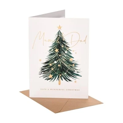 CHRISTMAS CARD - Send warm wishes this festive season with a Christmas card for friends, family, or colleagues. Whether traditional or funny, a heartfelt message will make their holiday even brighter. DESIGN - Let your mum and dad know how much they mean with this Christmas card, featuring a heartfelt message, and finished with Chirstmas tree design with gold accents. GIFT IDEAS - No matter the occasion, a well-chosen card will make anyone's day. From birthday cards to thank you cards, our collection offers something for every occasion. SIZE - This card measures 19.5 x 14 cm, ample space for a personal message, and a perfect size for displaying as a keepsake in your home. HIGH QUALITY & SUSTAINABLE - Our products are crafted from high-quality material, ensuring durability and a premium feel. We use materials from responsibly managed forests and controlled sources, certified by the Forest Stewardship Council (FSC).