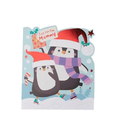 UK Greetings Christmas Card for Mummy Cute Penguins Design