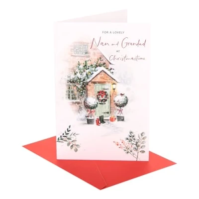 UK Greetings Christmas Card for Nan & Grandad Xmas Presents Her/Him snowy doorway With Envelope 21 x 13.7 cm