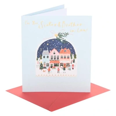 UK Greetings Christmas Card for Sister & Brother In Law Xmas Presents Her/Him SNOWGLOBE With Envelope 18.4 x 15.9 cm