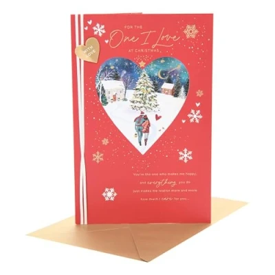 UK Greetings christmas Card for The One I Love Xmas Presents Her/Him scene With Envelope 29.5 x 19.4 cm