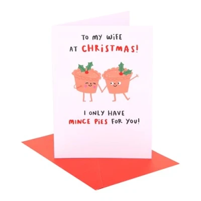 UK Greetings Christmas Card for Wife Xmas Presents Her, Girls, Women Mince Pies With Envelope 17.8 x 12.7 cm