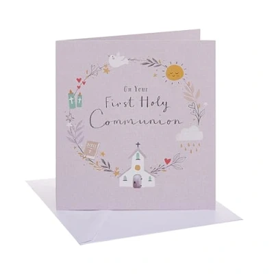 UK Greetings Communion Card Congratulations Her/Him Wreath Design With Envelope 13.7 x 15.9 cm