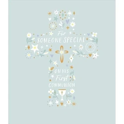 UK Greetings Communion Card for Boy Congratulations Him, Boys, Men Cross Icons Design With Envelope 15.9 x 18.4 cm