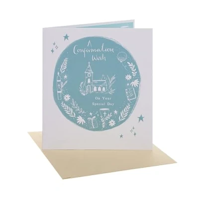 UK Greetings Confirmation Card Congratulations Her/Him Wreath Design With Envelope 15.9 x 18.4 cm