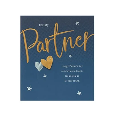 Send love and thanks to your partner on Father’s Day with this card, featuring a 3D effect heart and gold and silver foil. Message Inside Reads: Have a Great Father's Day with Lots of Love Card Size: 159x184mm Father's Day Card For Partner Envelope Included