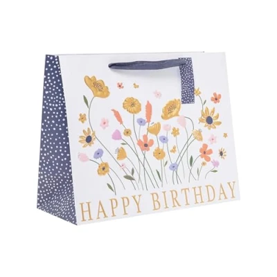 GIFT BAGS - Perfect for all occasions & easy to style. These versatile gift bags are ideal for birthday gifts, party bags, or general gift wrapping. Pair with tissue paper, gift wrap, or gift boxes for a stylish and stress-free presentation. DESIGN - Elevate your gift-giving experience with this exquisite large gift bag, featuring a captivating floral design that combines artistry with functionality. GIFT IDEAS - Whatever the celebration, thoughtful gift wrap makes all the difference. From birthday wrapping paper to gift bags and bottle bags, our range helps you give with style and make every gift feel personal. SIZE - This gift bag measures 33 x 26.7 x 13.7cm, no wrapping paper required! Simply place your gift inside, and the handles make it easy to carry. HIGH QUALITY & SUSTAINABLE - Our products are crafted from high-quality material, ensuring durability and a premium feel. We use materials from responsibly managed forests and controlled sources, certified by the Forest Stewardship Council (FSC).