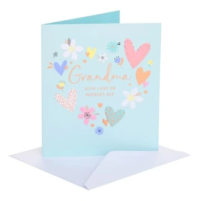 UK Greetings Mother's Day Card for Grandma Mum, Grandma, Wife Her, Girls, Women Hearts and Florals Design With Envelope 15.9 x 18.4 cm