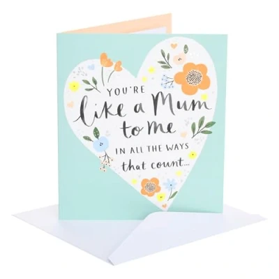 UK Greetings Mother's Day Card for Like A Mum Mum, Grandma, Wife Her, Girls, Women Big Heart With Flowers Design Envelope 15.9 x 18.4 cm
