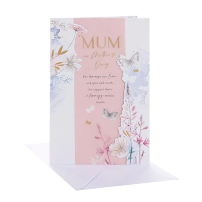 UK Greetings Mother's Day Card for Mum Mum, Grandma, Wife Her, Girls, Women Florals and Butterflies Design With Envelope 17.8 x 27.3 cm