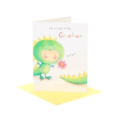 UK Greetings Mother's Day Card from Grandson With Envelope Sweet Dinosaur Design, Green