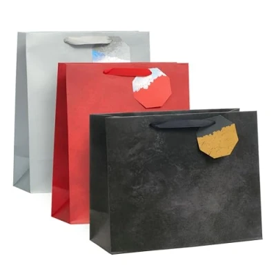 GIFT BAGS - Perfect for all occasions & easy to style. These versatile gift bags are ideal for birthday gifts, party bags, or general gift wrapping. Pair with tissue paper, gift wrap, or gift boxes for a stylish and stress-free presentation. DESIGN - This multipack of 3 large gift bags are a sophisticated way to send a special gift their way, whatever the occasion. GIFT IDEAS – Whatever the celebration, thoughtful gift wrap makes all the difference. From birthday wrapping paper to gift bags and bottle bags, our range helps you give with style and make every gift feel personal. SIZE - Each of the gift bags measures 26.7 x 33 x 13.7 cm, no wrapping paper required! Simply place your gift inside, and the handles make it easy to carry. HIGH QUALITY & SUSTAINABLE - Our products are crafted from high-quality material, ensuring durability and a premium feel. We use materials from responsibly managed forests and controlled sources, certified by the Forest Stewardship Council (FSC).
