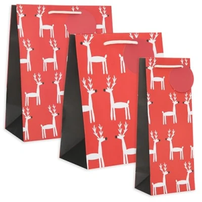 UK Greetings Multipack of Giftbags For Him/Her/Friend 1 Medium Gift Bag, Large Bag & Bottle Christmas Gifts Reindeer Design
