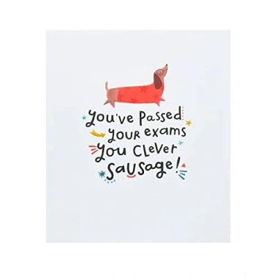 UK Greetings Passing Exams Card For Him/Her/Friend With Envelope Sausage Dog Design