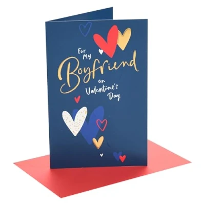 UK Greetings Valentine's Day Card for Boyfriend I Love You Presents Him, Boys, Men Lettering With Hearts Design Envelope 14.9 x 22.9 cm