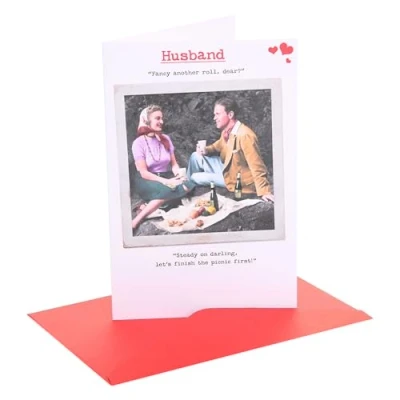 UK Greetings Valentine's Day Card for Husband I Love You Presents Him, Boys, Men Couple Having Picnic Design With Envelope 14.9 x 22.9 cm