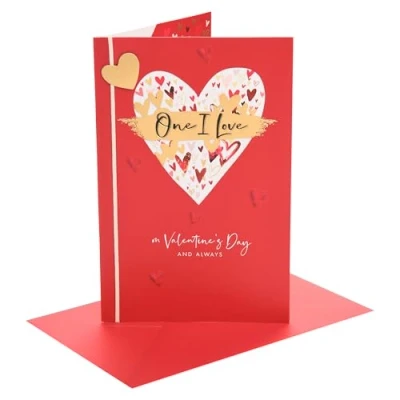 UK Greetings Valentine's Day Card for One I Love You Presents Her/Him Heart Design With Envelope 16.5 x 25.4 cm