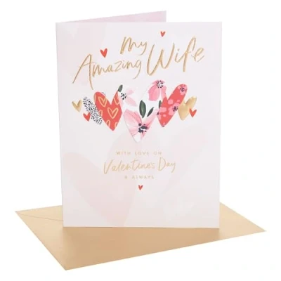 UK Greetings Valentine's Day Card for Wife I Love You Presents Her, Girls, Women Hearts Design With Envelope 21 x 27.5 cm