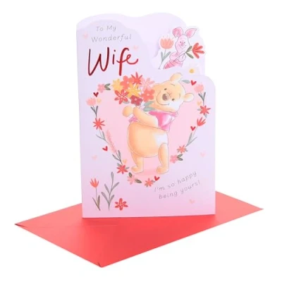 UK Greetings Valentine's Day Card for Wife I Love You Presents Her, Girls, Women Winnie The Pooh With Bouquet Design Envelope 14.9 x 22.9 cm