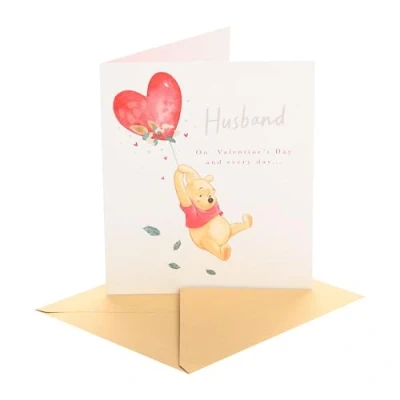 UK Greetings Valentine's Day Card for Wife I Love You Presents Him, Boys, Men Balloon Heart Winnie the Pooh Design With Envelope 15.9 x 18.4 cm