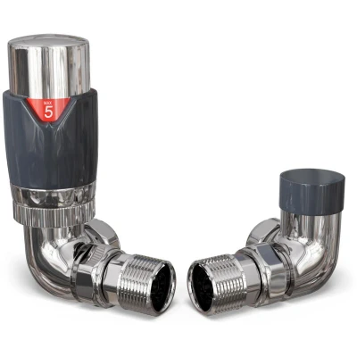 UK Radiators Anthracite Thermostatic Radiator Valve and Corner Lockshield Gloss Finish Classy Modern Design 1/2" x 15mm