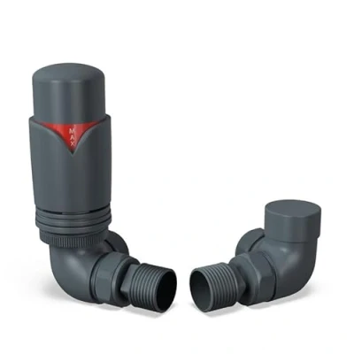 UK Radiators Anthracite Thermostatic Radiator Valve and Corner Lockshield Matt Finish Classy Modern Design 1/2" x 15mm