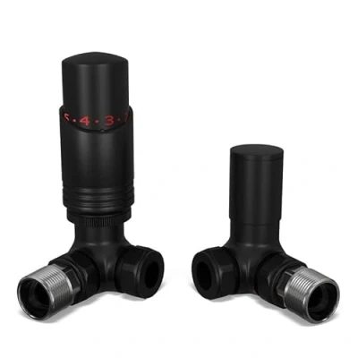 UK Radiators Black Thermostatic Radiator Valve 10mm Corner Lockshield in Color and Matt Finish Classy Modern Design 1/2" x