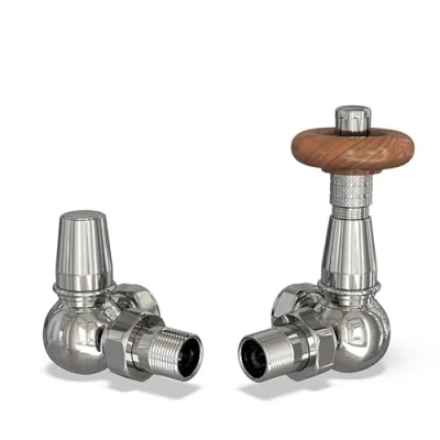 UK Radiators Chrome Thermostatic Radiator Valve and Corner Lockshield Polished Finish Traditional Design 1/2" x 15mm