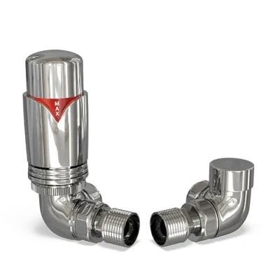UK Radiators Chrome Thermostatic Radiator Valve and Lockshield Classy Modern Design 1/2" x 15mm Corner