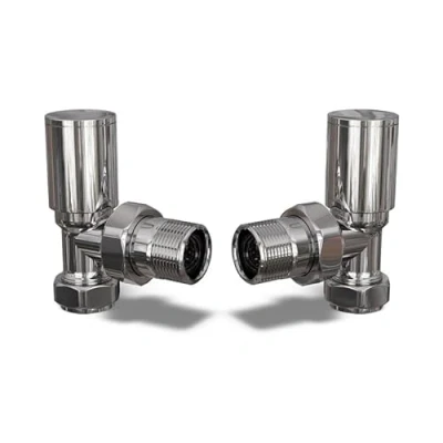 UK Radiators Round Chrome Radiator Valve Pair Polished Finish Classy and Modern Design 1/2" x 10mm Angled of Valves