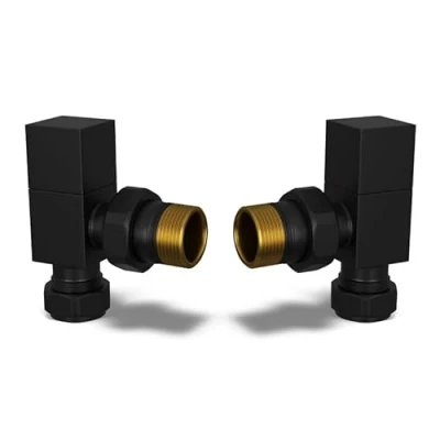 UK Radiators Square Black Radiator Valve Pair Matt Finish Classy and Modern Design 1/2" x 10mm Angled of Valves