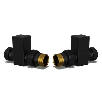 UK Radiators Square Black Radiator Valve Pair Matt Finish Classy and Modern Design 1/2" x 15mm Straight of Valves