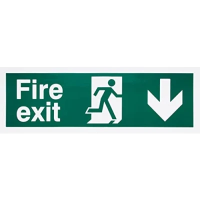 UK Safety Store Fire Exit Arrow Down Sign 300mm x 100mm Self Adhesive
