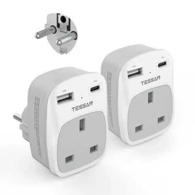 European Plug Adapter: This EU adapter plug Compatible in multiple countries such as France, Germany, Greece, Iceland, the Netherlands, Korea, Norway, Poland, Portugal, Spain (Some city may need Type C adapter, please choose the suitable plug) 3 in 1 EU Travel Adapter: This travel adapter UK to Europe can turn 1 Type E F socket into 1 UK outlet and 2 USB ports (1 USB C), allowing you to charge 3 devices simultaneously, compatible with laptops, camera and other devices European USB Charger Plug: The USB A and USB C ports can charge up to 2.4A; EU to UK plug adapter with 2 types of USB ports can detect charged devices and give you multiple charging options, won't need to bring extra adapters Compact Size: The UK to European plug adapter has a lightweight, portable design that fits easily in your pocket, effectively saving the space of your suitcase, backpack and handbag, suitable for business trips, travel, etc Instruction for Use: The plug adapter Europe to UK is not a voltage converter; Make sure your device has an input voltage range of 100 to 250V, and the maximum power of Euro plug adapter is 3250W, Manufacturer: Zhuhai Tessan Power Technology Co.,Ltd.