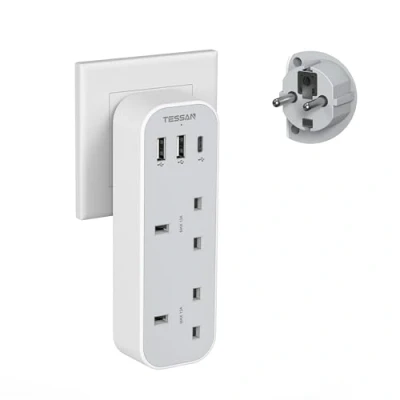 UK to European plug adapter: Schuko travel adapter uk to europe is compatible in most of european countries such as Spain, France, Iceland, Germany, Greece, Poland, Portugal, Croatia, Norway, Austria, Netherlands, Turkey, etc; (Instruction: This EU adapter will not work in Italy, some cities may need Type C plug) USB C Travel Plug Adapter:Dual USB A ports features 2.4A, the USB C port features 3A; 2 types of USB ports can detect charged devices and deliver optimal charging speed, giving you more charging options; idea for USB devices like cell phone, tablet, earphone, etc 5 in 1 Euro Plug Adapter: This UK to EU plug adapter with USB converts a European wall socket to 2 UK AC outlets and 3 USB slots, which can support 5 electrical devices charging simultaneously Small and Lightweight Design: This double plug sockets has a lightweight design, which charges 5 devices at the same time; With the compact design and simple operation; It is suitable for outgoing, traveling and business trip,etc Instructions for Use: This UK Plug adapter to EU is not a voltage converter; Please confirm your devices compatible with dual voltage or worldwide voltage devices with input voltage range from 100to 250V, Manufacturer: Zhuhai Tessan Power Technology Co., Ltd.